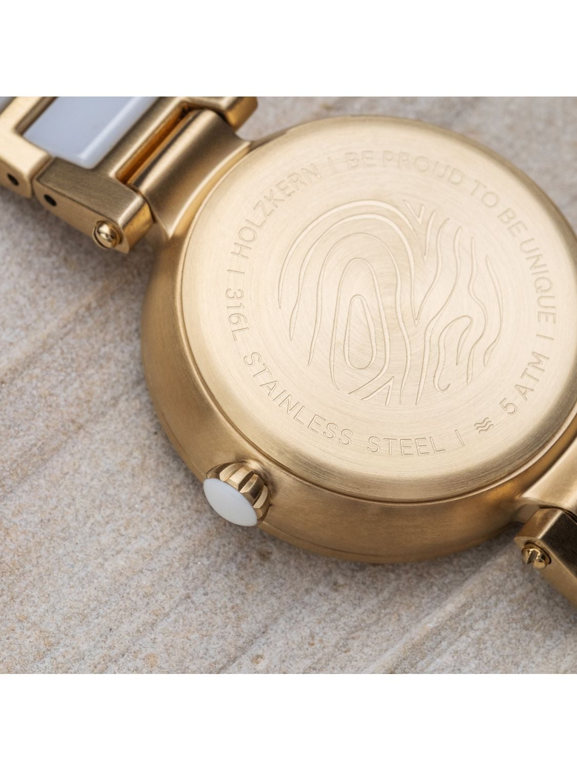• Gehäuse aus mattiertem Edelstahl, champagnergoldfarben beschichtet
