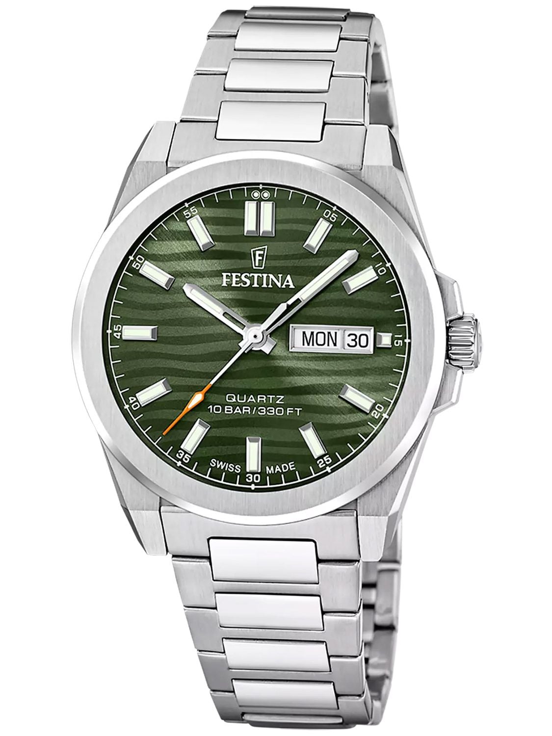 • Festina F20073/4 Herren-Armbanduhr Stahl/Grün mit Saphirglas Verpackung
