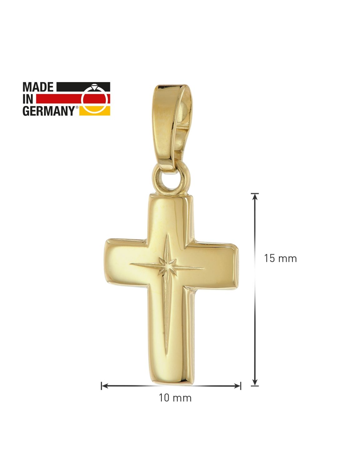 trendor Kreuz-Anhänger für Kinder Gold 585/14K mit goldplattierter Kette