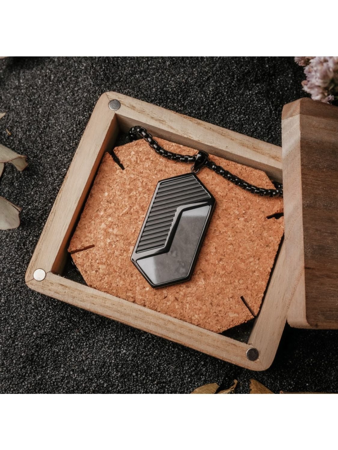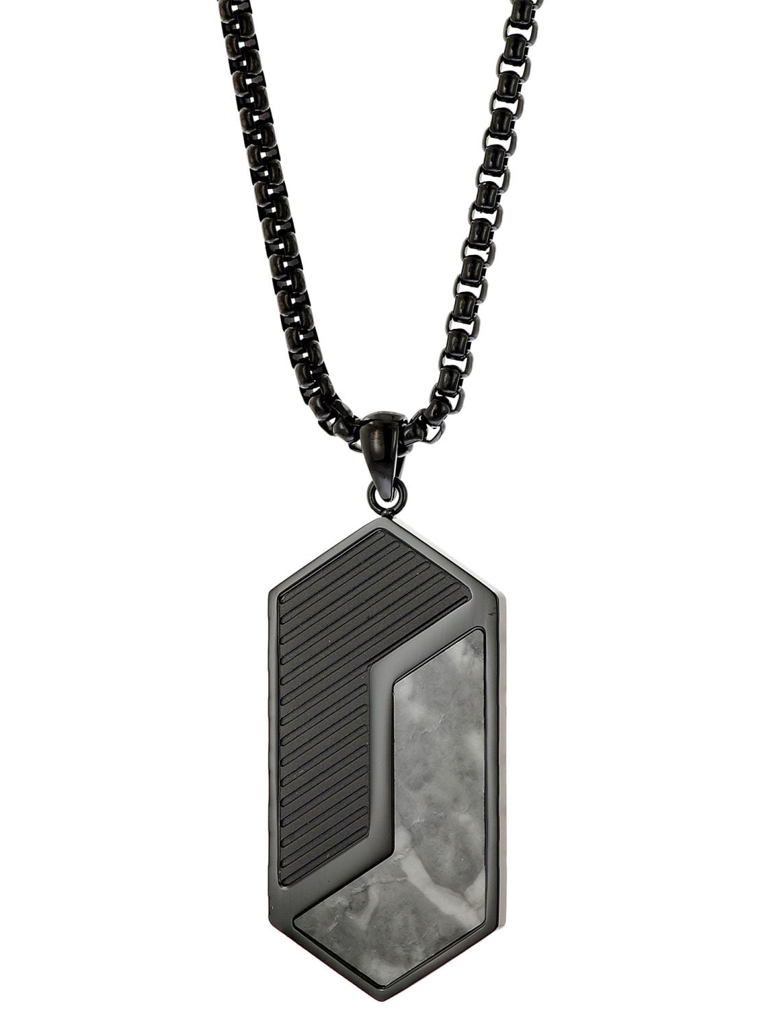 • Holzkern Herren-Halskette Edelstahl Zigzag Marmor/Schwarz Verpackung
