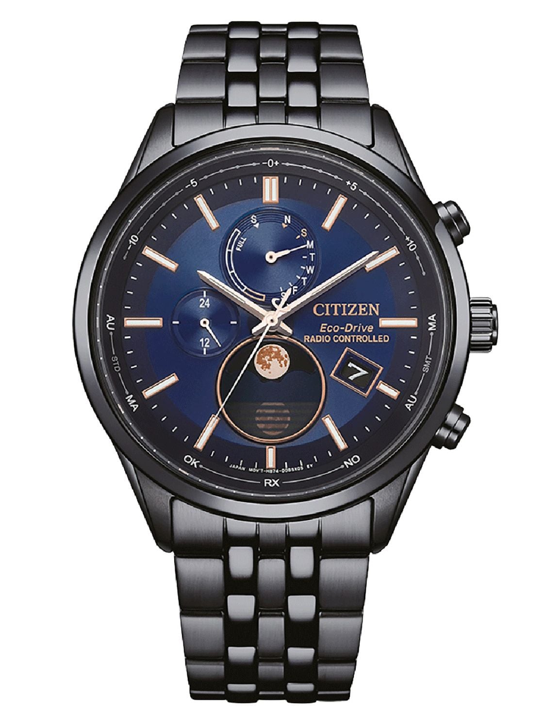 Citizen Eco-Drive Herrenuhr Funk-Solar Mondphase Schwarz/Blau
