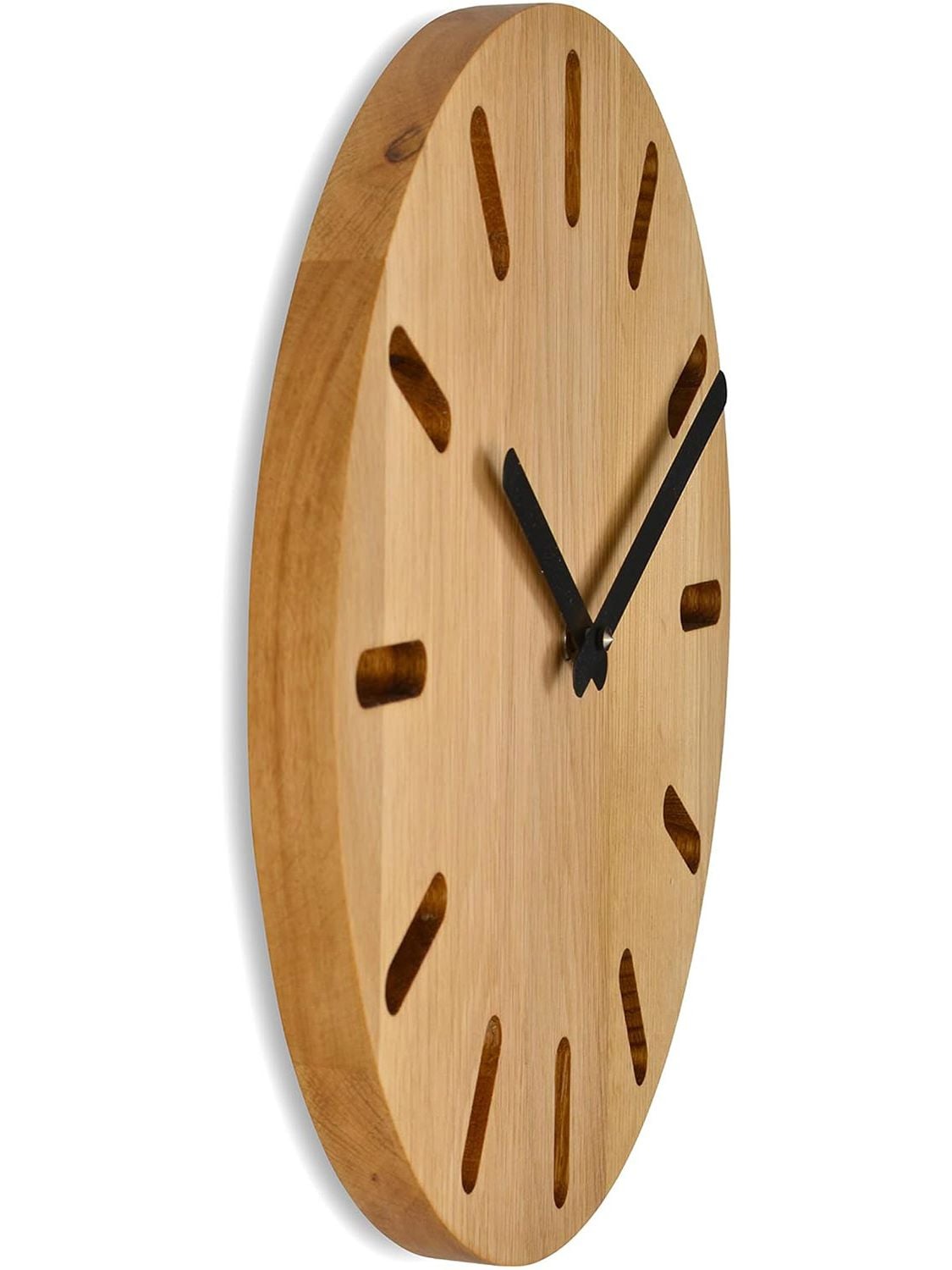 • Gesamttiefe 3,5 cm - durch den gewollten Abstand zur Wand und die Ausfräsungen wirkt die Uhr leicht und scheint an der Wand zu schweben