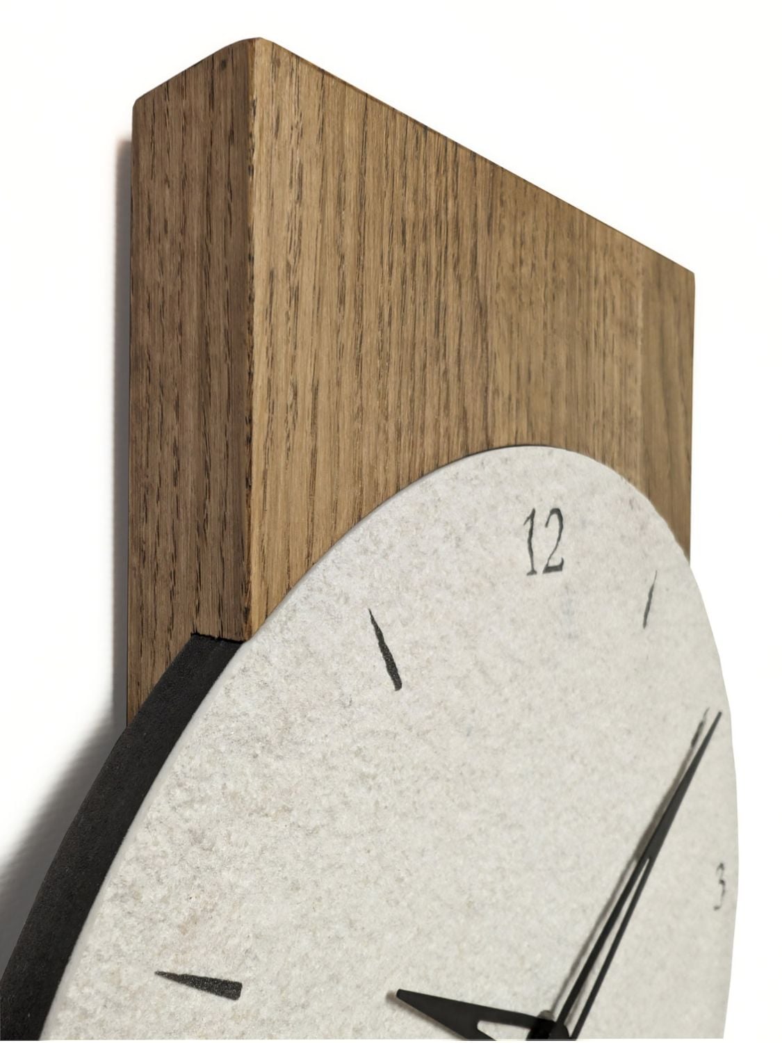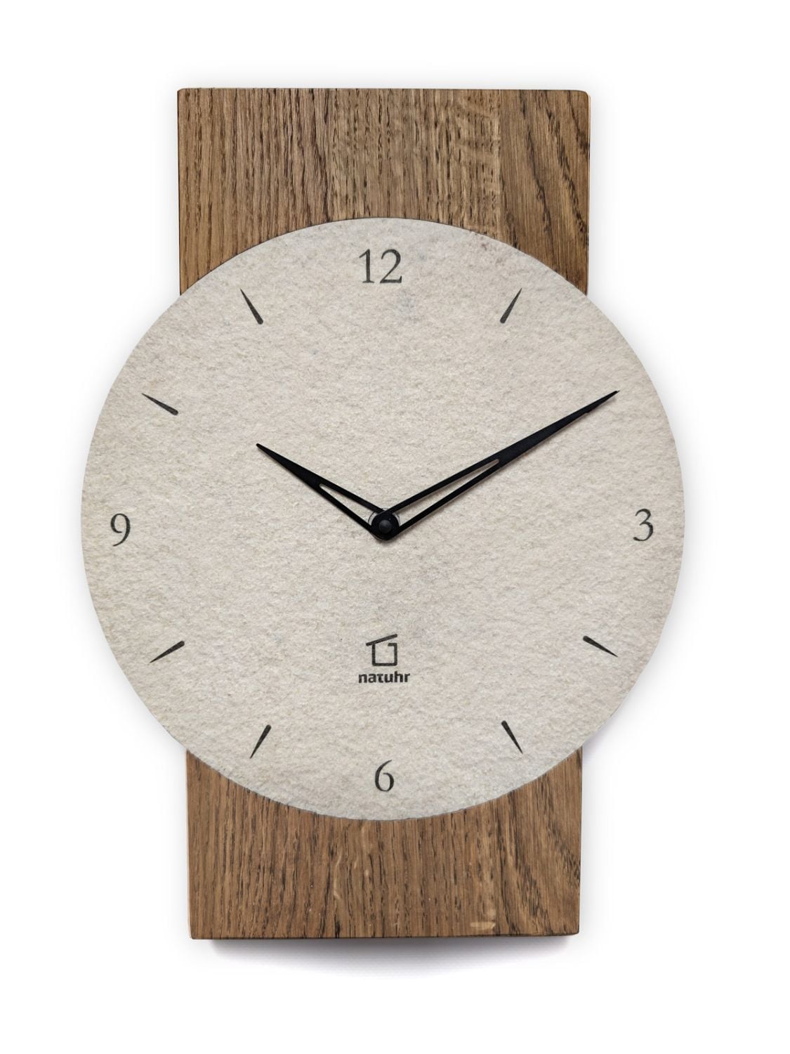• Wanduhr aus Eichenholz kombiniert mit Sandstein