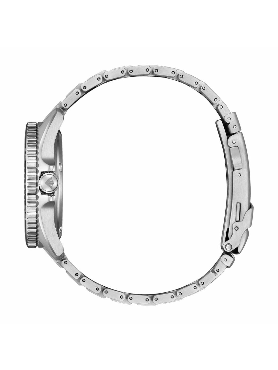 • einseitig drehbare blaue Lünette mit Minutenskala und Leuchtpunkt