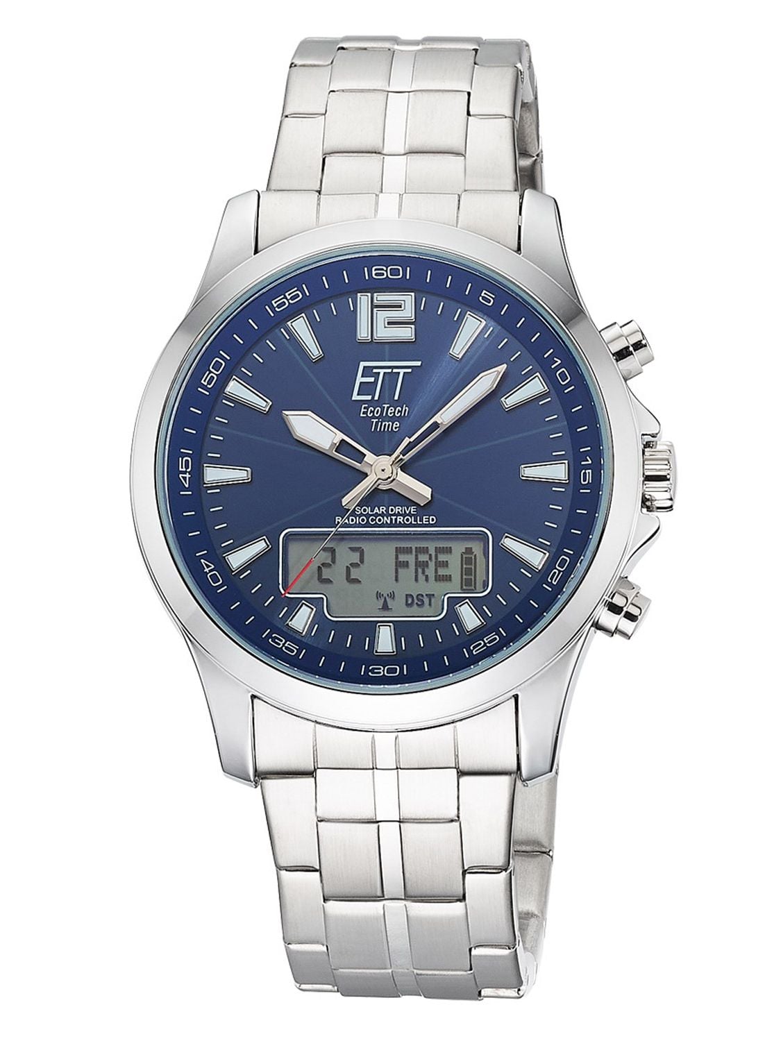 ETT Eco Tech Time Funk-Solar Herrenuhr Professional Worldtimer Blau
