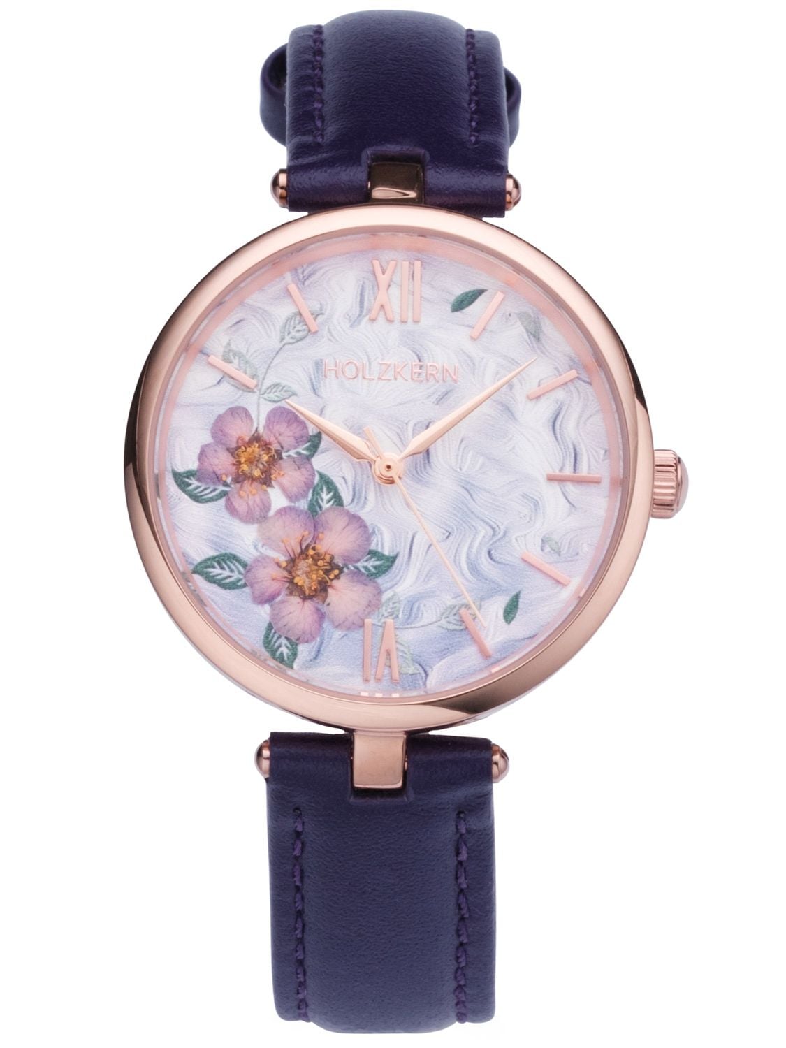 • Holzkern Damenuhr Everbloom Pflaumenblüte Violett/Roségoldfarben 1