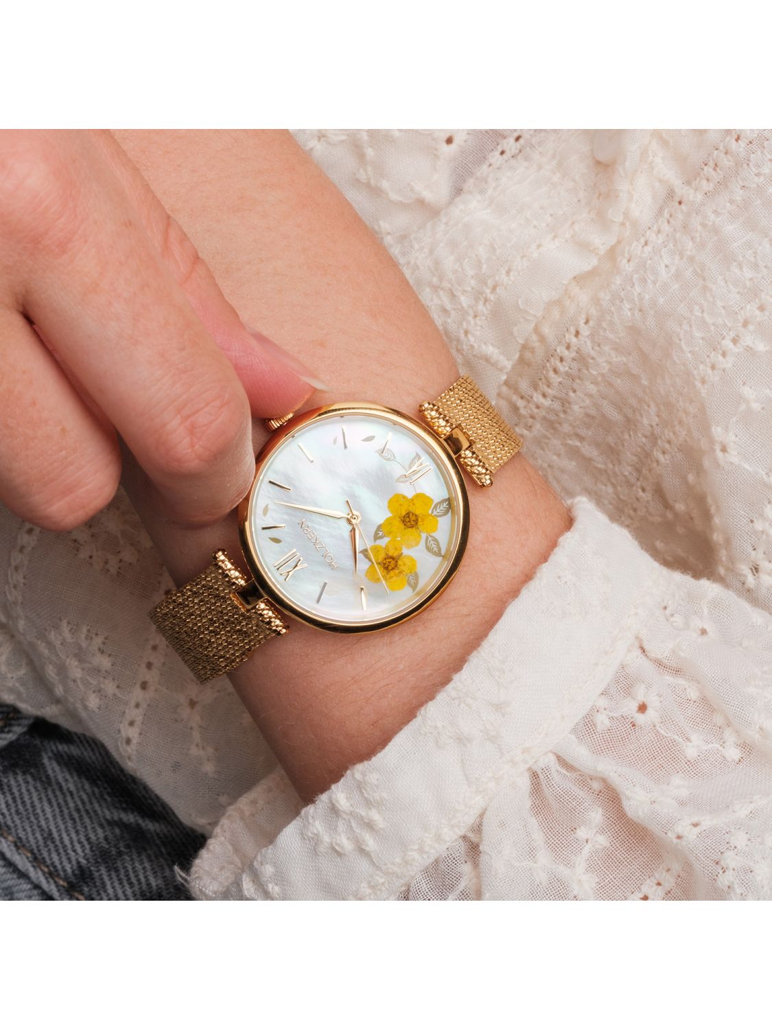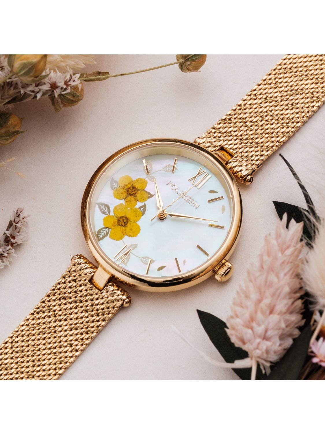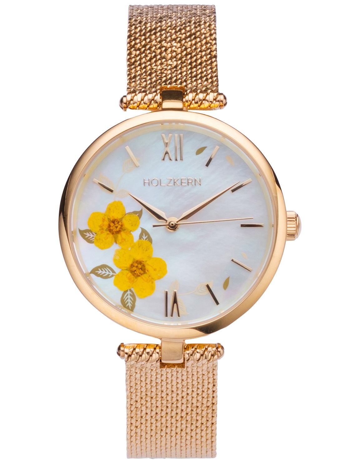 • Holzkern Damenuhr Everbloom Pflaumenblüte Gelb/Goldfarben 4