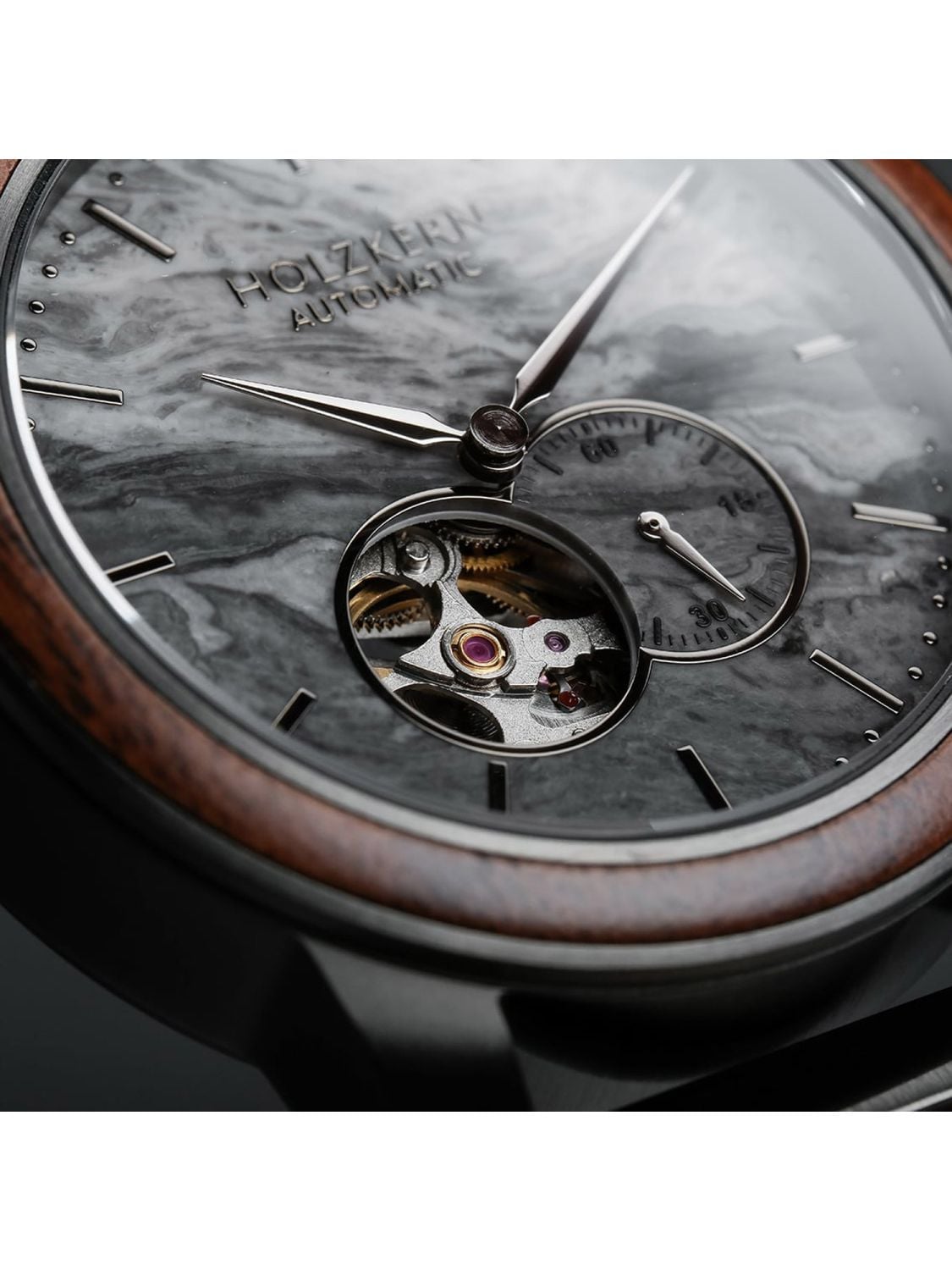 • Holzkern Herrenarmbanduhr Automatik Chicago Walnuss/Marmor 2