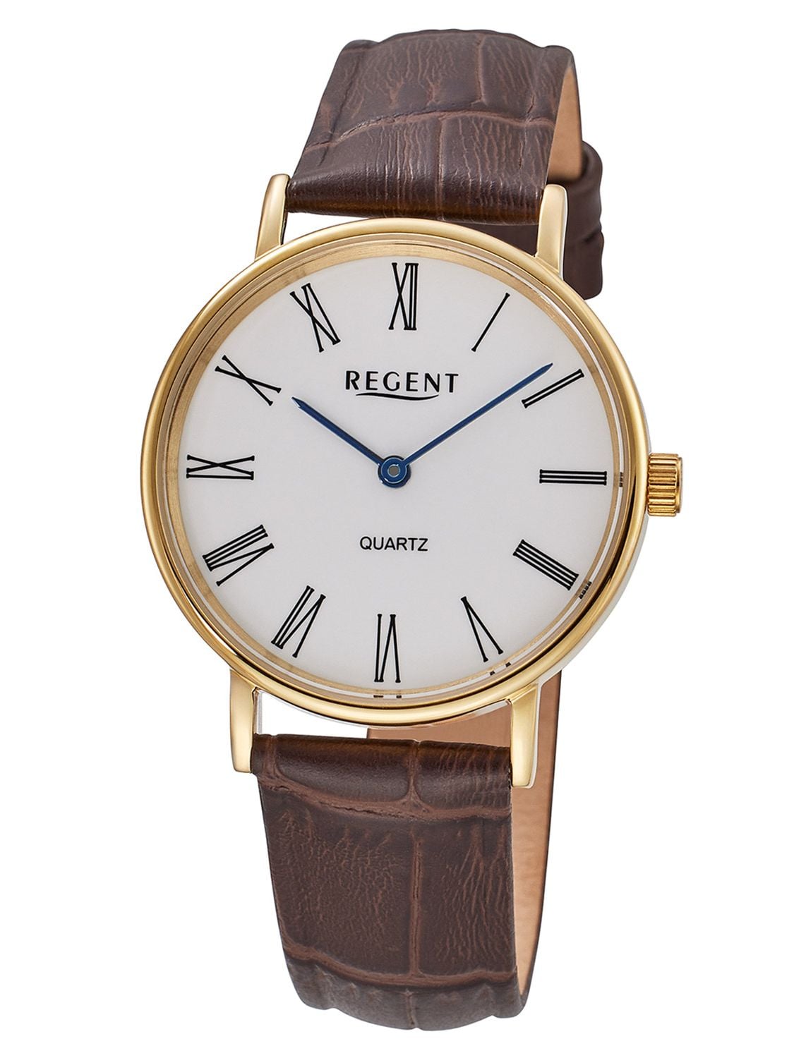Regent F-1577 Quarzuhr für Damen Braun/Goldfarben 4050597603982